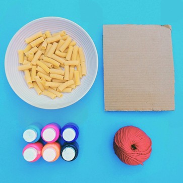 • Use hot glue to attach pasta to one side of the cardboard shapes