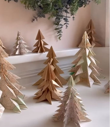 Upcycle maps, brown paper, books and music paper into these adorable paper trees with @my_plastic_free_home