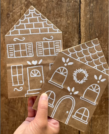 Learn how to make Gingerbread House Gift Bags made using brown sandwich bags with @woodlark – Ashley Koshimizu